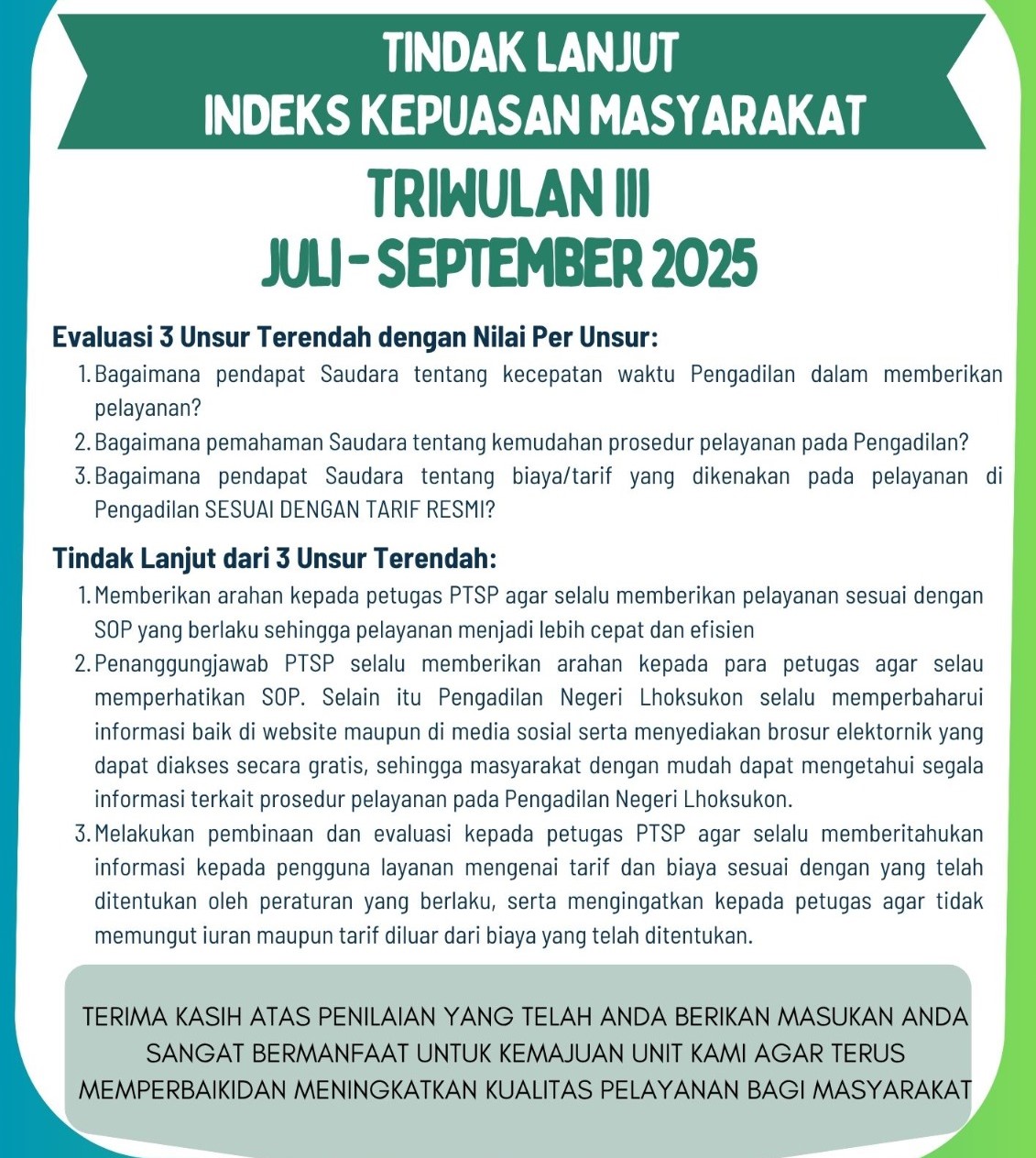 Masyarakat pencari keadilan dapat mendapatkan salinan putusan dengan cepat dan mudah dengan mengakses Direktori Putusan Mahkamah Agung RI satuan kerja Pengadilan Negeri Lhoksukon Kelas IB.