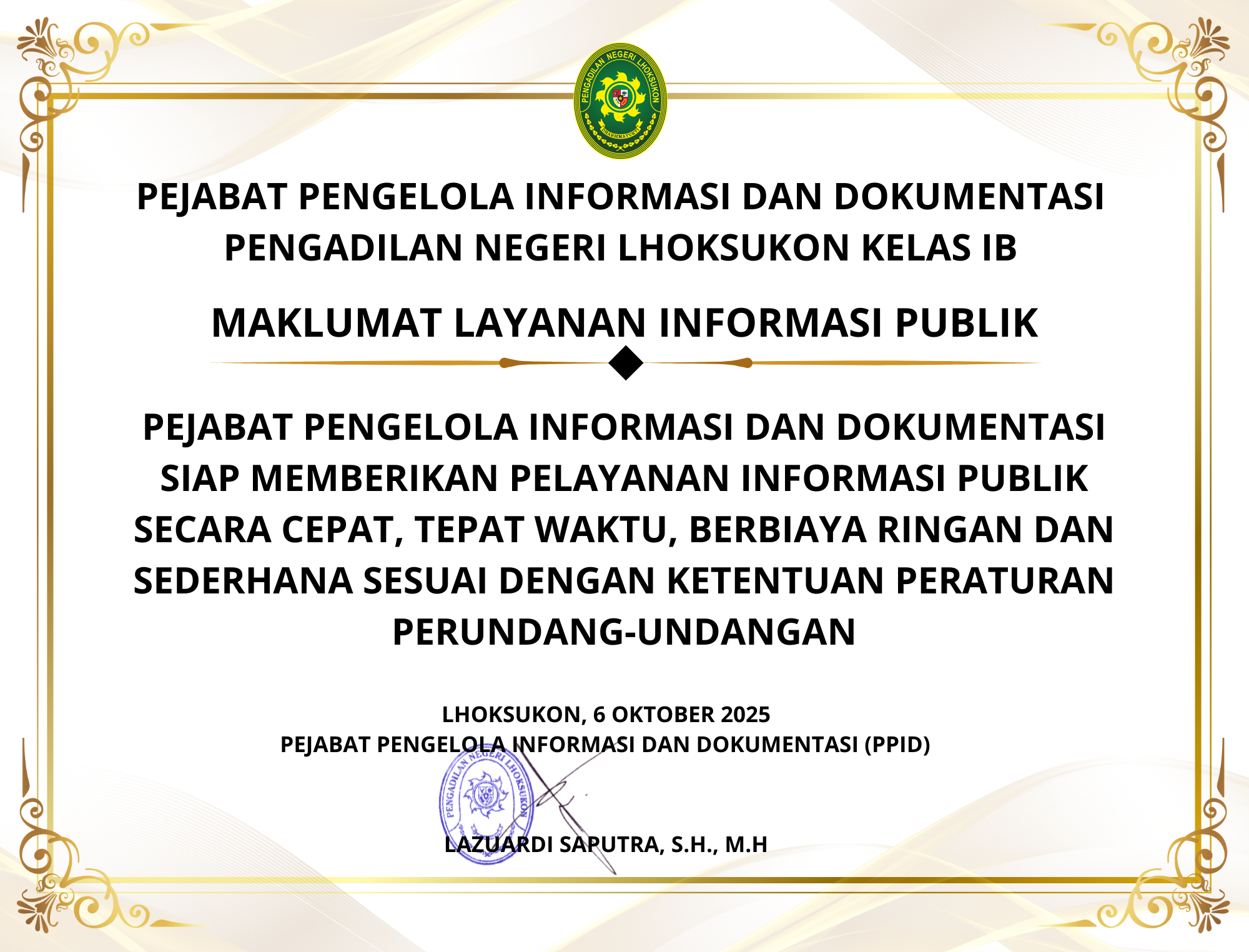 Masyarakat pencari keadilan dapat mendapatkan salinan putusan dengan cepat dan mudah dengan mengakses Direktori Putusan Mahkamah Agung RI satuan kerja Pengadilan Negeri Lhoksukon Kelas IB.