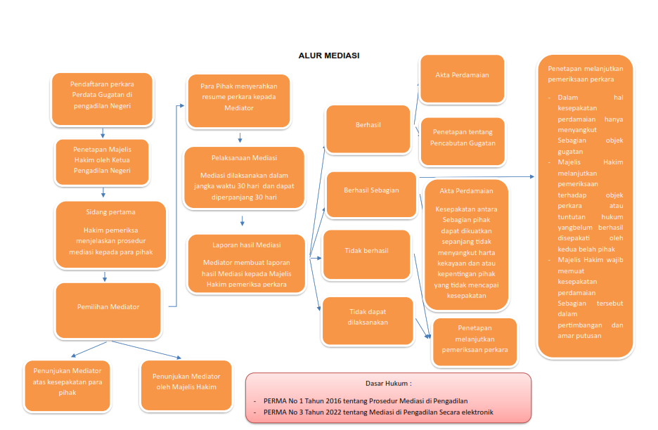 - Jangka waktu proses mediasi di dalam pengadilan paling lama adalah 40 hari kerja, dan dapat diperpanjang lagi paling lama 14 hari kerja.