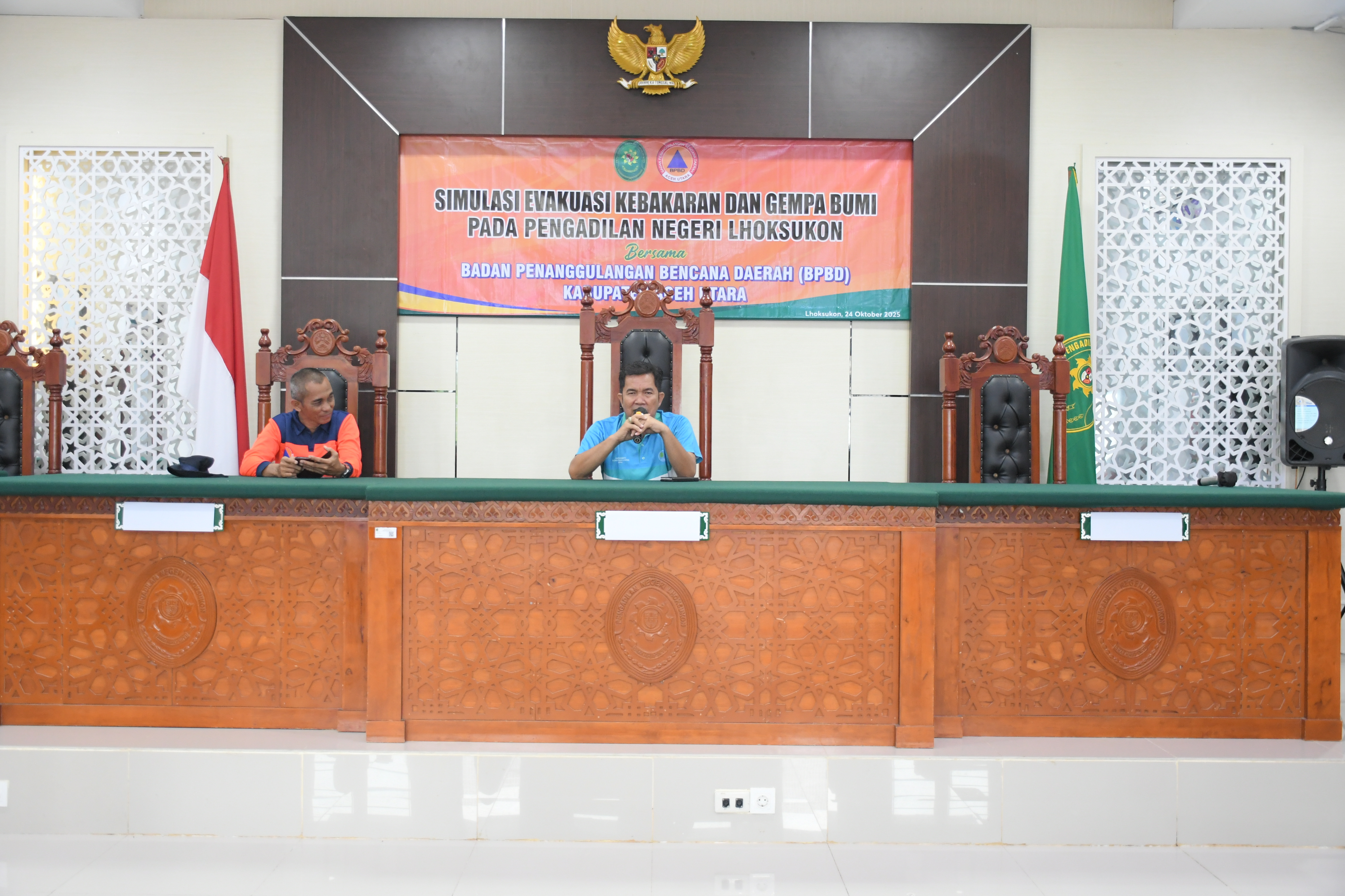 Lhoksukon - Jum'at (24/10/2025) pada pukul 10.00 WIB Pengadilan Negeri Lhoksukon mengadakan Simulasi Evakuasi Kebakaran dan Gempa Bumi bersama dengan Badan Penanggulangan Bencana Daerah (BPBD) Kabupaten Aceh Utara.