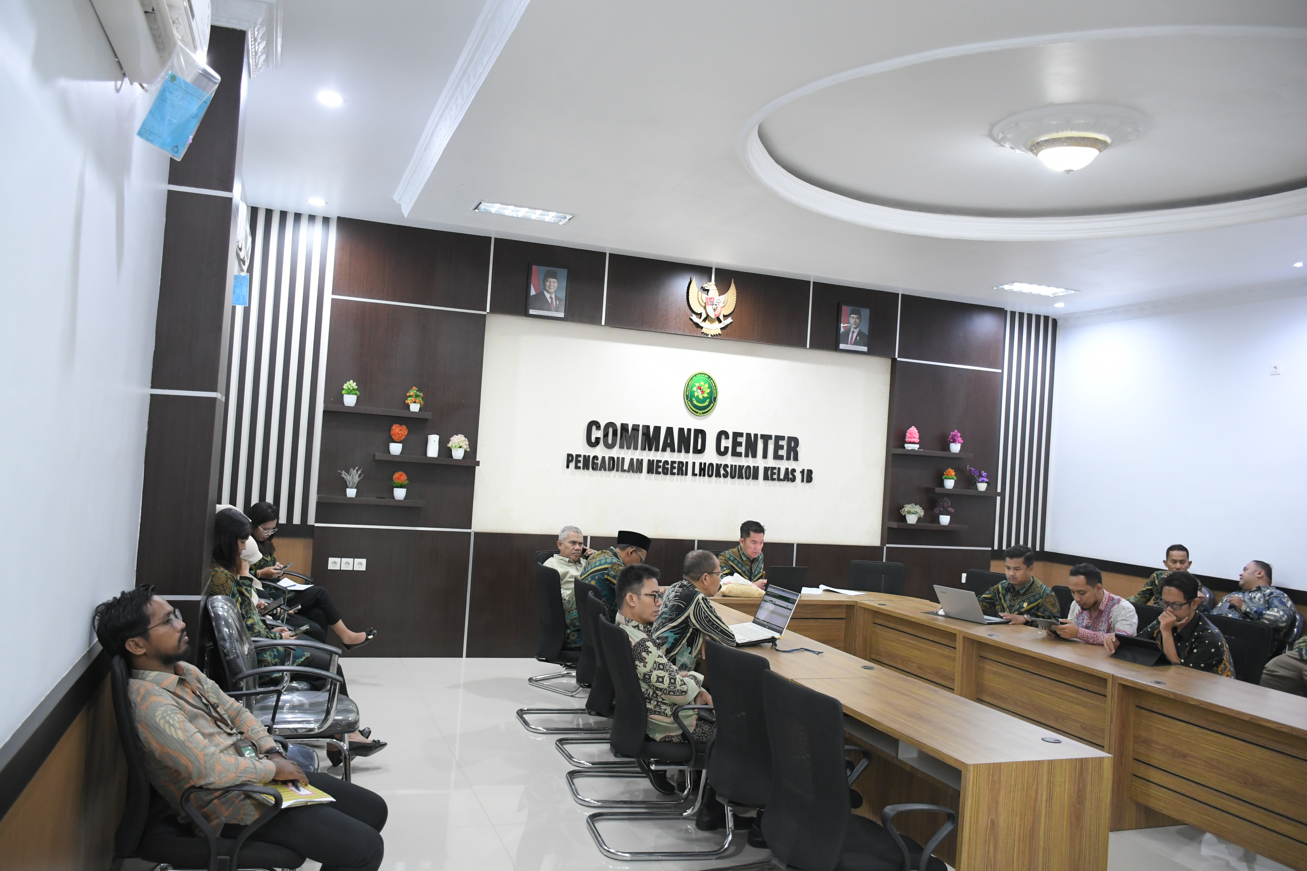 Lhoksukon – Kamis, 05 Maret 2026 bertempat diruang Command Center Pengadilan Negeri Lhoksukon Kelas IB, pada pukul 09.00 WIB seluruh Hakim dan ASN mengikuti Sosialisasi Evaluasi Pembangunan Zona Intgritas di lingkungan Peradilan Umum yang diikuti daring .