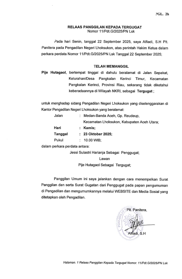 RELAAS PANGGILAN UMUM PERKARA NO. 11/Pdt.G/2025/PN Lsk