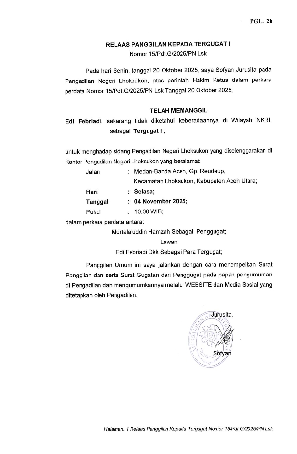 RELAAS PANGGILAN UMUM PERKARA NO. 15/Pdt.G/2025/PN Lsk