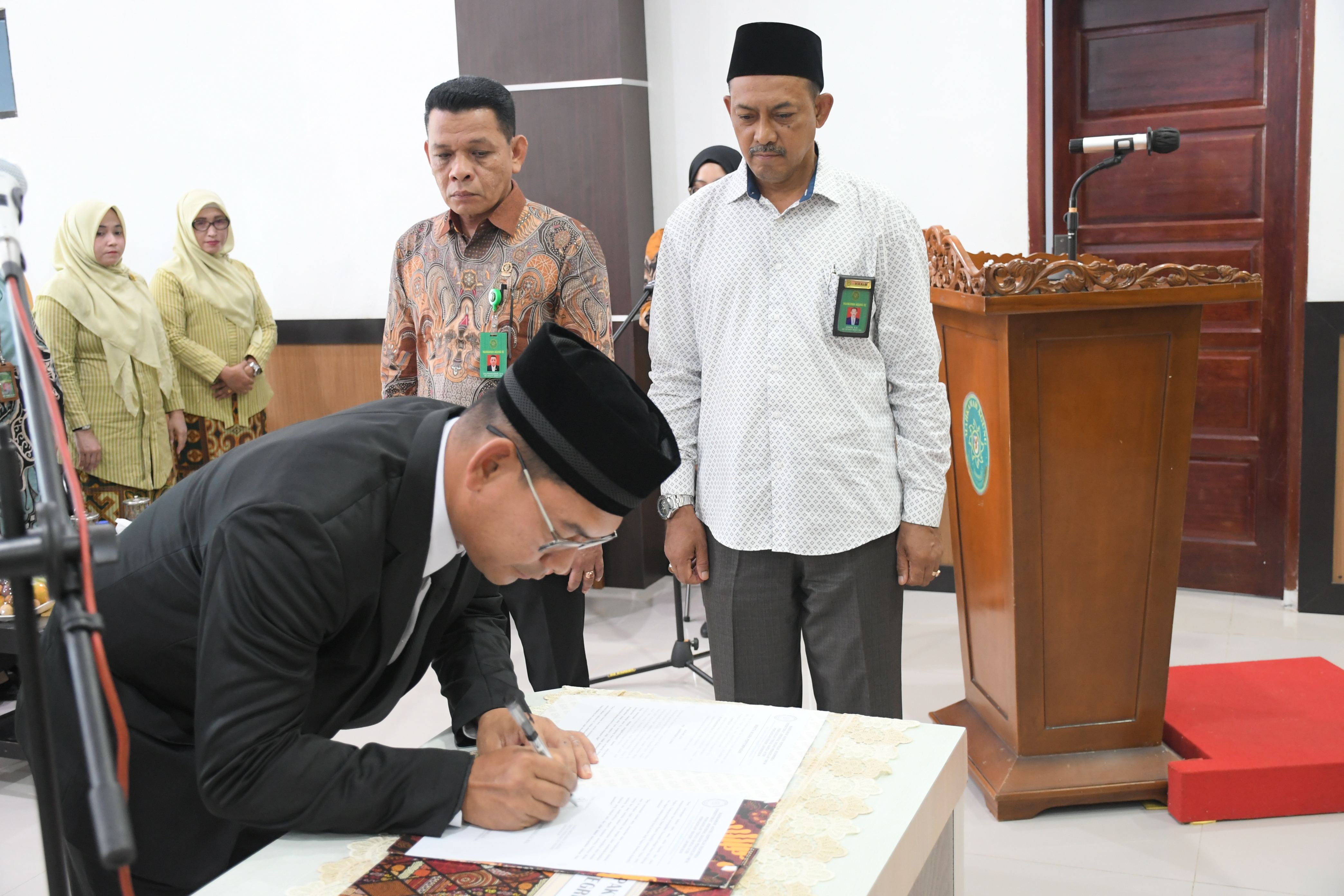 Acara Pelantikan diawali dengan Pembacaan Surat Keputusan Direktorat Badan Peradilan Umum (Badilum) Mahkamah Agung Republik Indonesia dan dilanjutkan dengan pengambilan sumpah jabatan dan kata-kata pelantikan oleh Ketua Pengadilan Negeri Lhoksukon Bapak Muhifuddin, S.H.,M.H dan dilanjutkan dengan penandatanganan berita acara pelantikan.